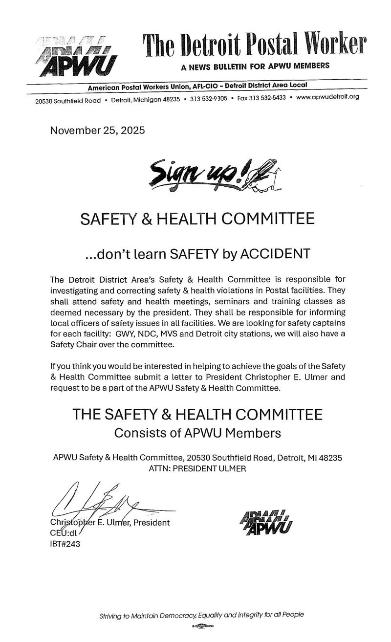 Home of the American Postal Workers Union, Detroit District Area Local #295, AFL-CIO
