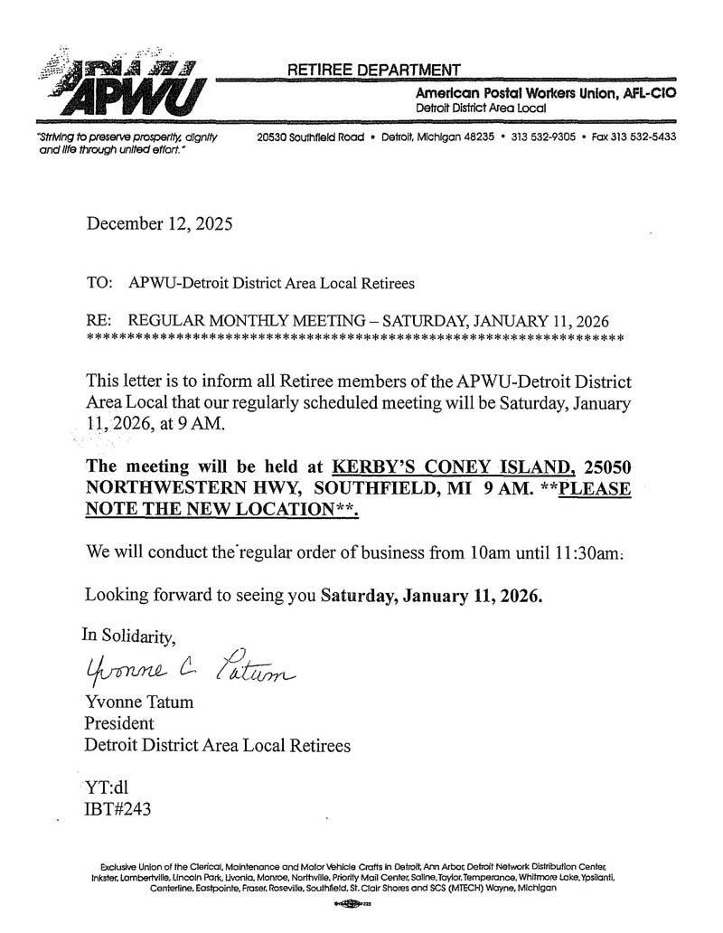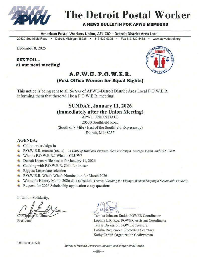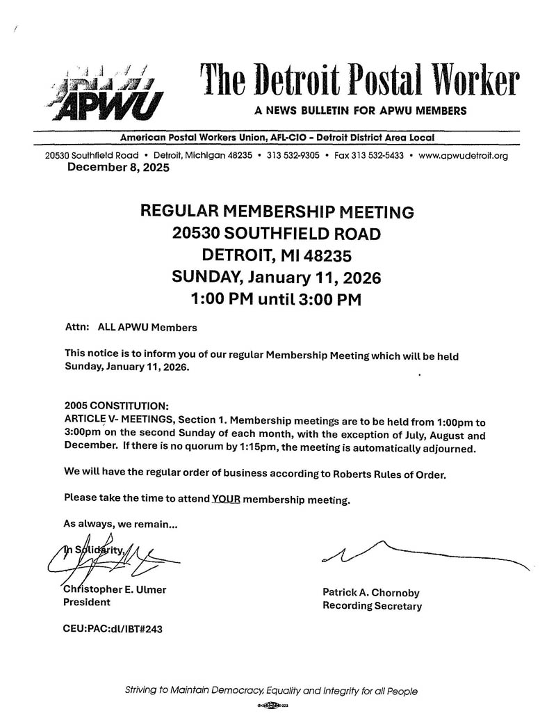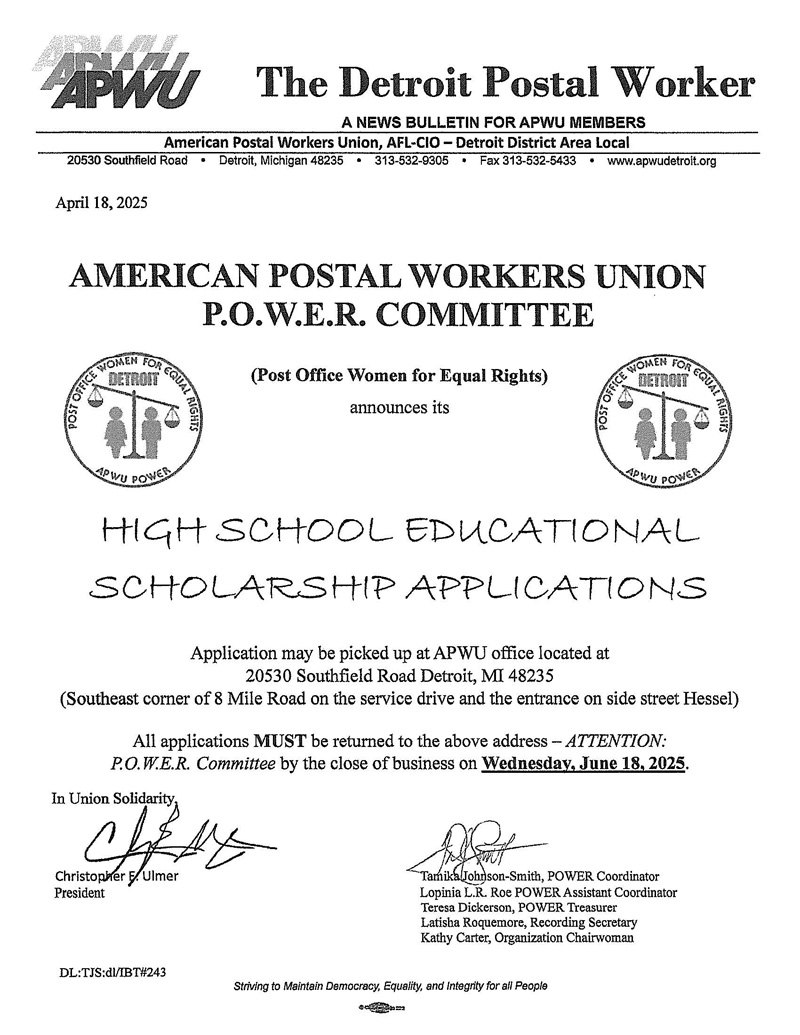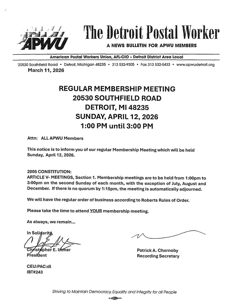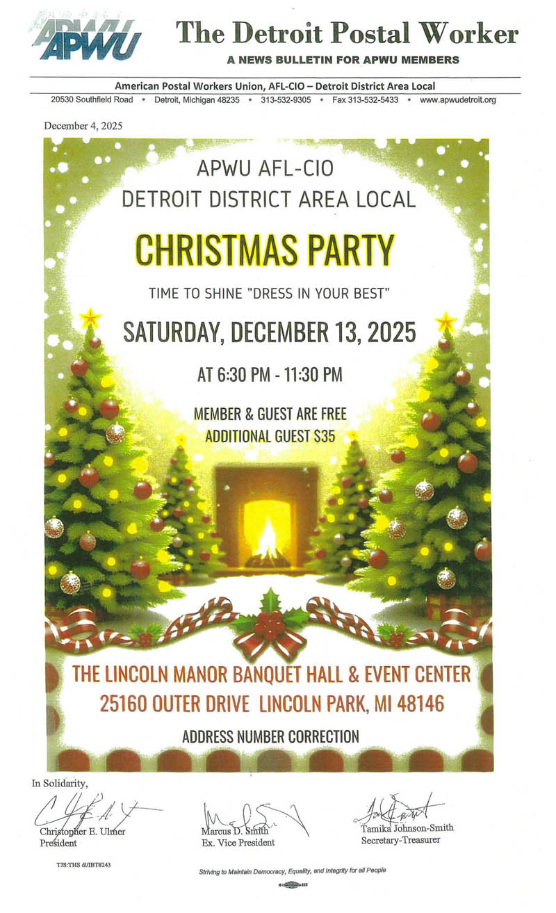 Home of the American Postal Workers Union, Detroit District Area Local #295, AFL-CIO