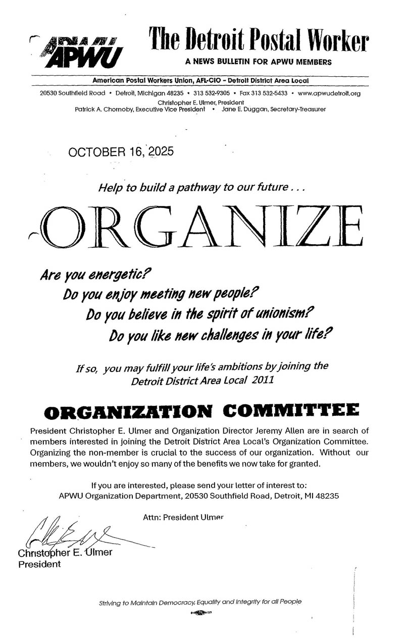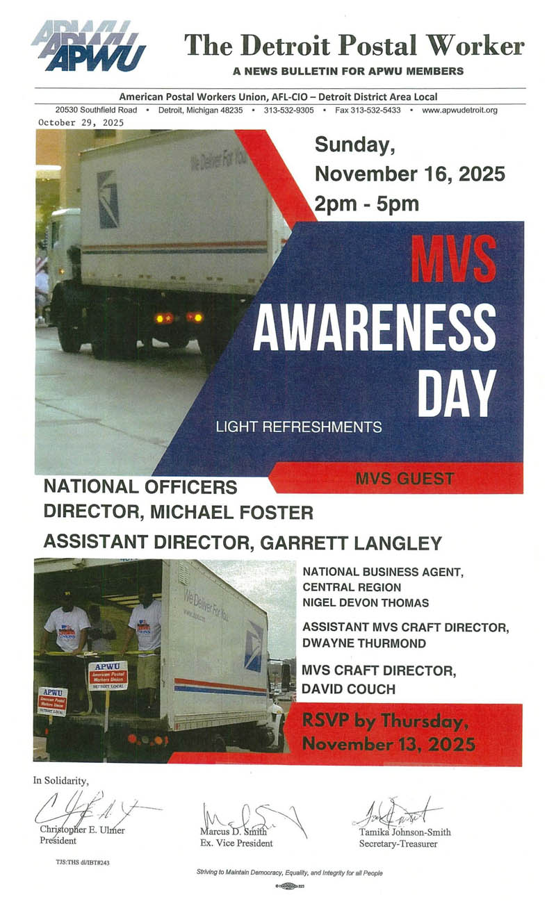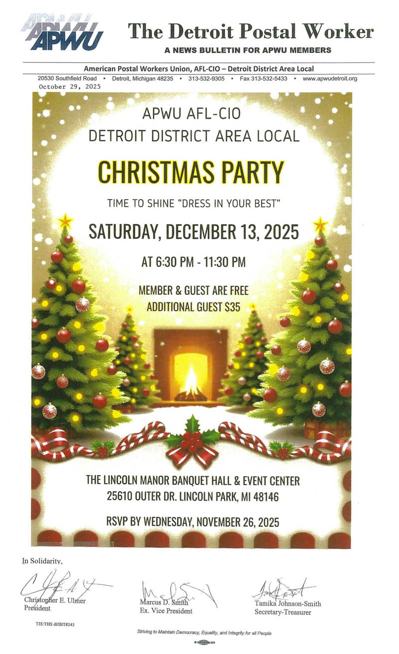 Home of the American Postal Workers Union, Detroit District Area Local #295, AFL-CIO