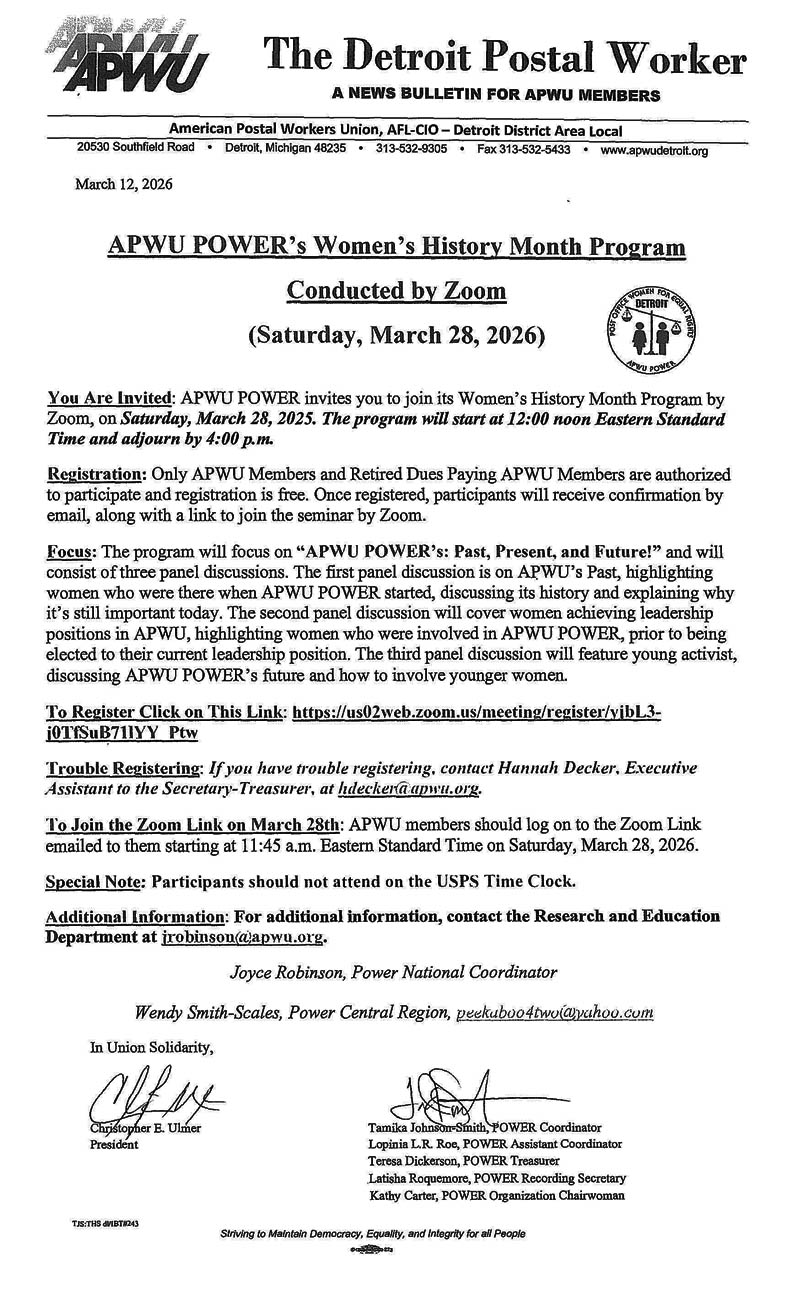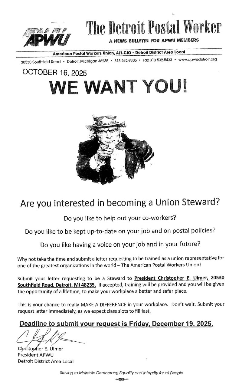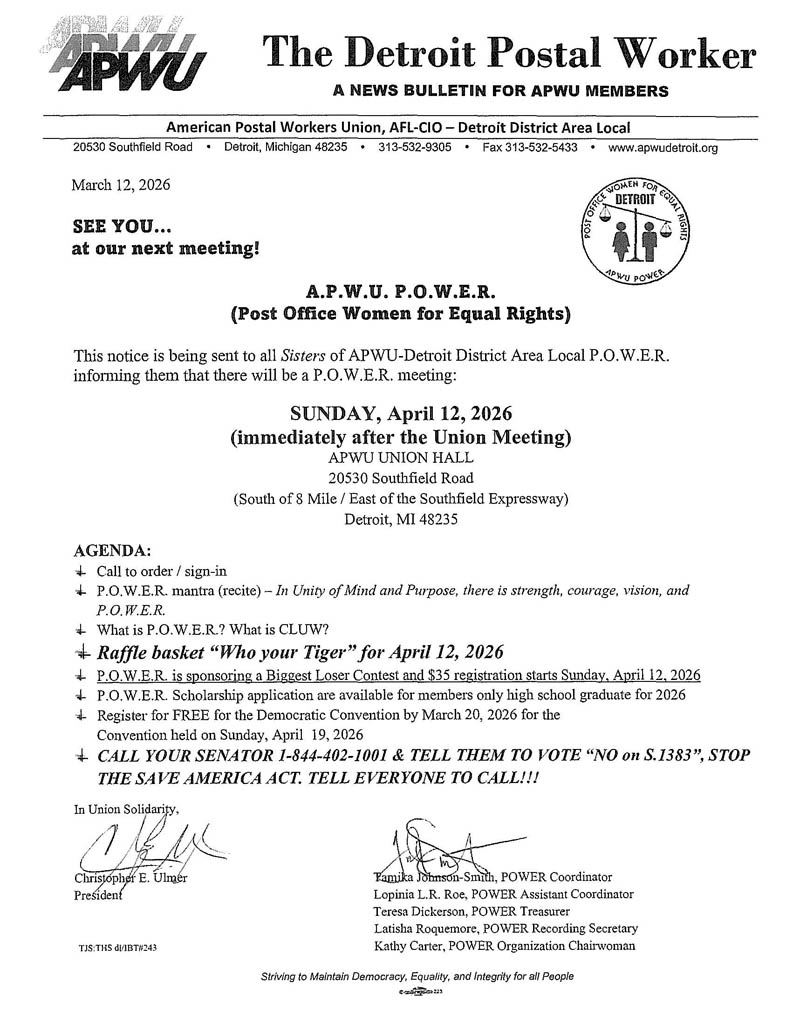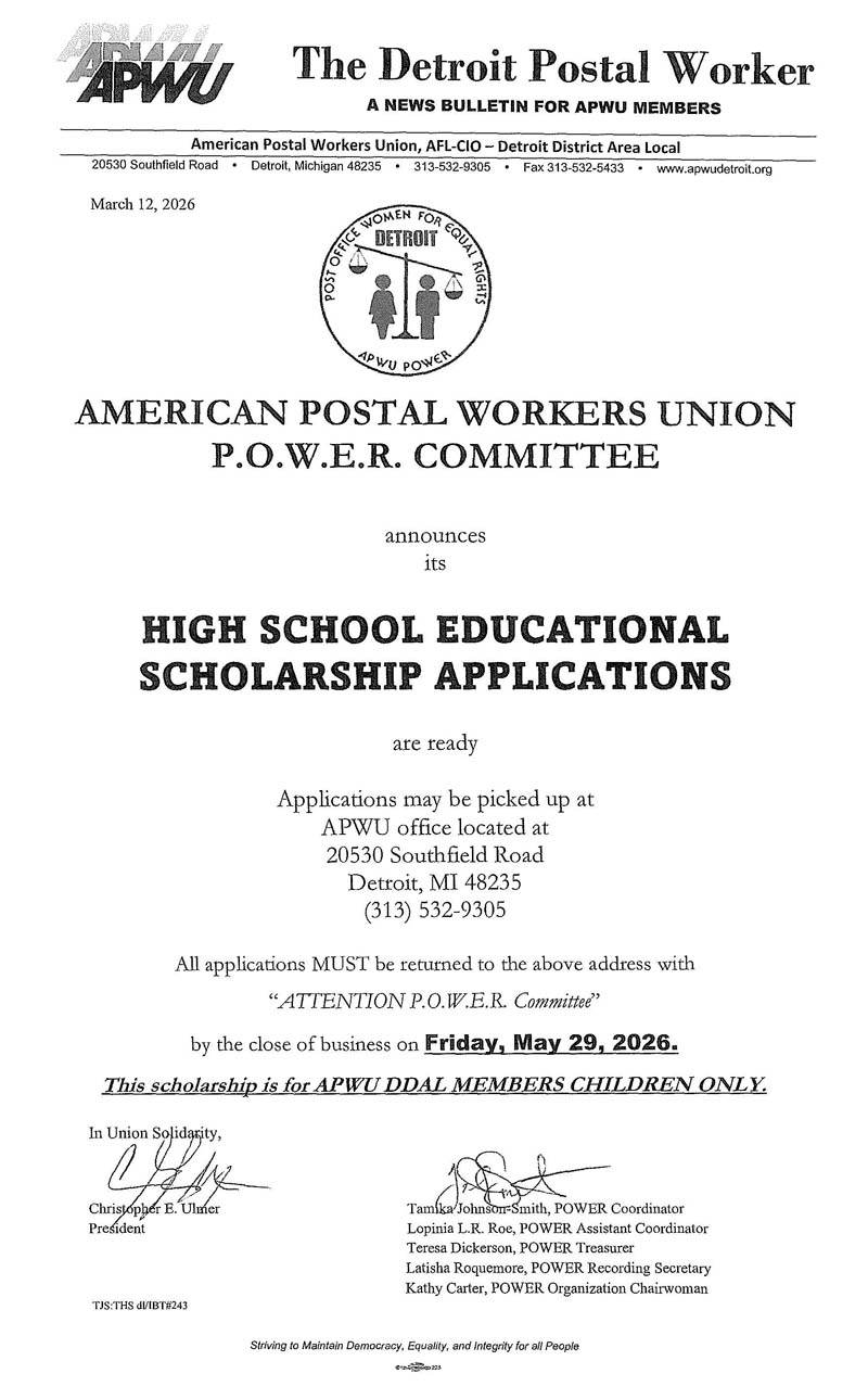 Home of the American Postal Workers Union, Detroit District Area Local #295, AFL-CIO